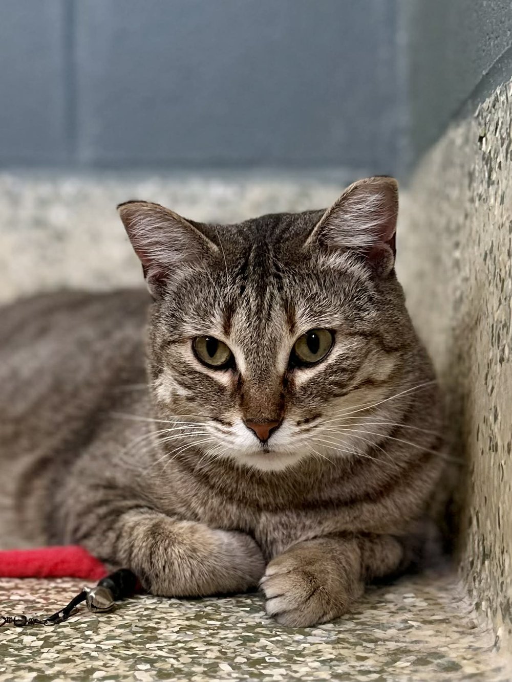 Hi there, I'm Giselle! I'm pretty adorable aren't I? I know you're gonna want to come and say hi quickly to me, given how cute I am, but I'm still rather shy. In my former life as a stray, I had little interaction with people and thus I don't yet know if they're trustworthy. Slowly but surely, I'm building up my confidence, and you can help me! Approach me slowly and gently, and I may decide that you are safe enough to take some pets from. I know I'll come out of my shell, I just need a bit of time and understanding. While I'm still not overly keen on being touched, I've discovered my playful side! When I think nobody is watching, I can often be spotted batting a mouse toy or ball around my room, and with staff and volunteers that I trust, I can be enticed to play with a wand toy. Play is definitely the way to my heart! I look forward to finding my furrever family, that knows just what a gem in the rough I am!