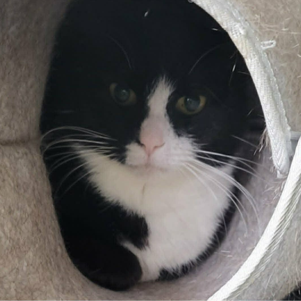 Hia, I'm Kimchi, a striking black-and-white girl with a fiery little heart tucked beneath my cautious exterior. I'm a little bit "spicy" for now, since the world still seems so big and scary, I feel the need to protect myself. I'm quick, clever, and very clear about needing my space while I figure out this whole "people" thing.