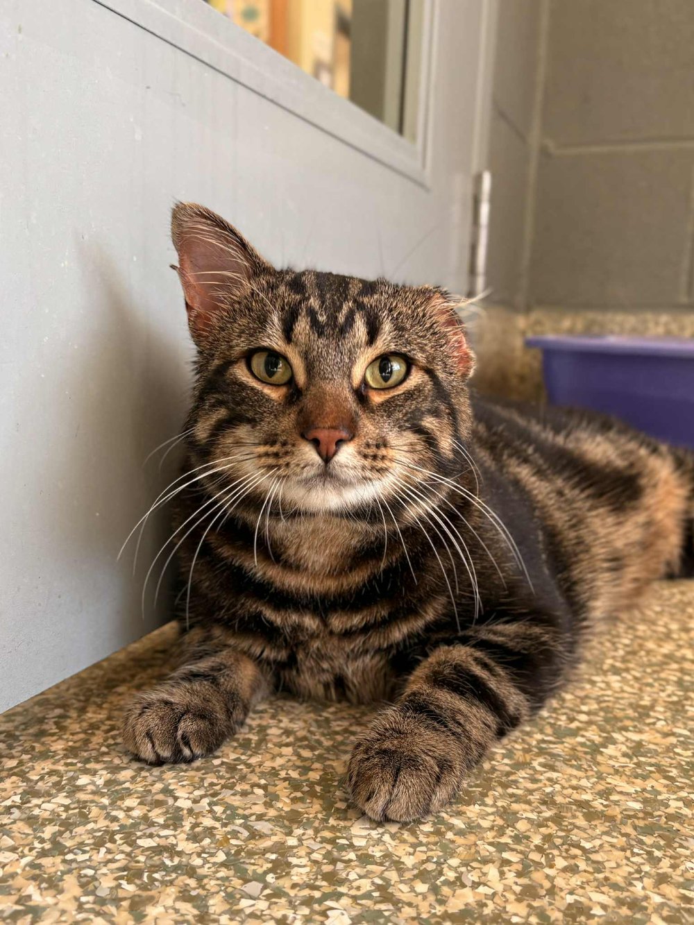 Hey, I'm Milo! I'm a big, handsome lovebug on the hunt for the purrfect forever home! You might notice I only have one ear... it seems I lost the other one to frostbite during my times as a stray, but I think it just adds to my street cat cred! I'm ready to put that life behind me, in place of cozy couch snoozes, napping in sunbeams, and snuggling up under the covers. There's nothing in the world I love more than people, so I hope you want a cat that has a high quota for snuggles! I'm confident, cuddly, and one cool cat, so get in touch if you think you might like to take me home!