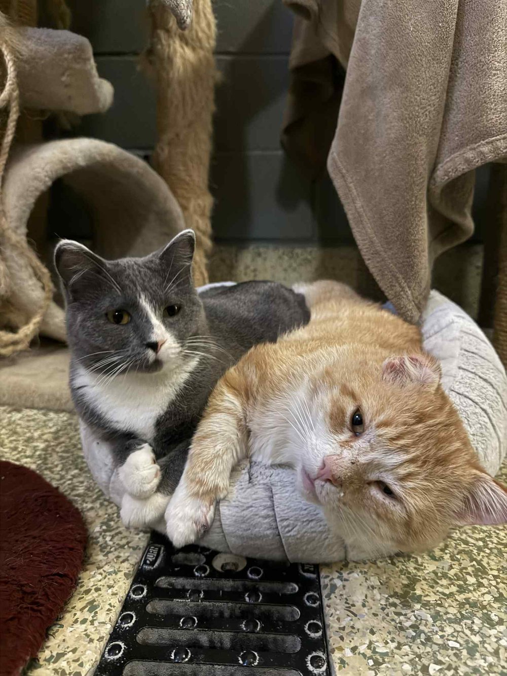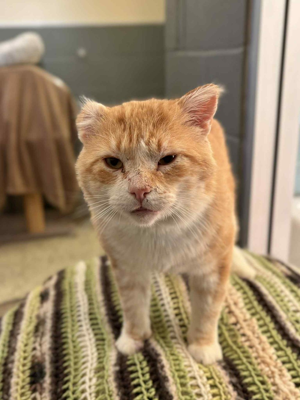Hi I'm O'Malley! I'm looking to find an amazing home alongside my bonded pair, Duchess. Just like Duchess and Thomas from the Aristocats, my rugged charm compliments Duchess' elegant beauty just purrfectly! I may look like I'm straight out of a street-cat storybook with my big orange tomcat cheeks, face covered in scars, half a tail, and a missing ear and a couple toes, but don't be fooled-beneath that tough exterior is the mushiest heart you'll ever meet! I'm a big softie who melts for cuddles, happily soaking up affection and purring my way into your lap. I'm never far from my buddy Duchess, who leans on me for courage and bravery. I'm a confident fella, so I'm more than happy to help her feel safe! Together, we're a delightful duo: I lead the way, and Duchess follows with quiet trust. We love to cozy up in bed together, and I always like to have her in my sight incase I'm needed for comfort or confidence. We can't wait to find a home that loves us both for exactly who we are!