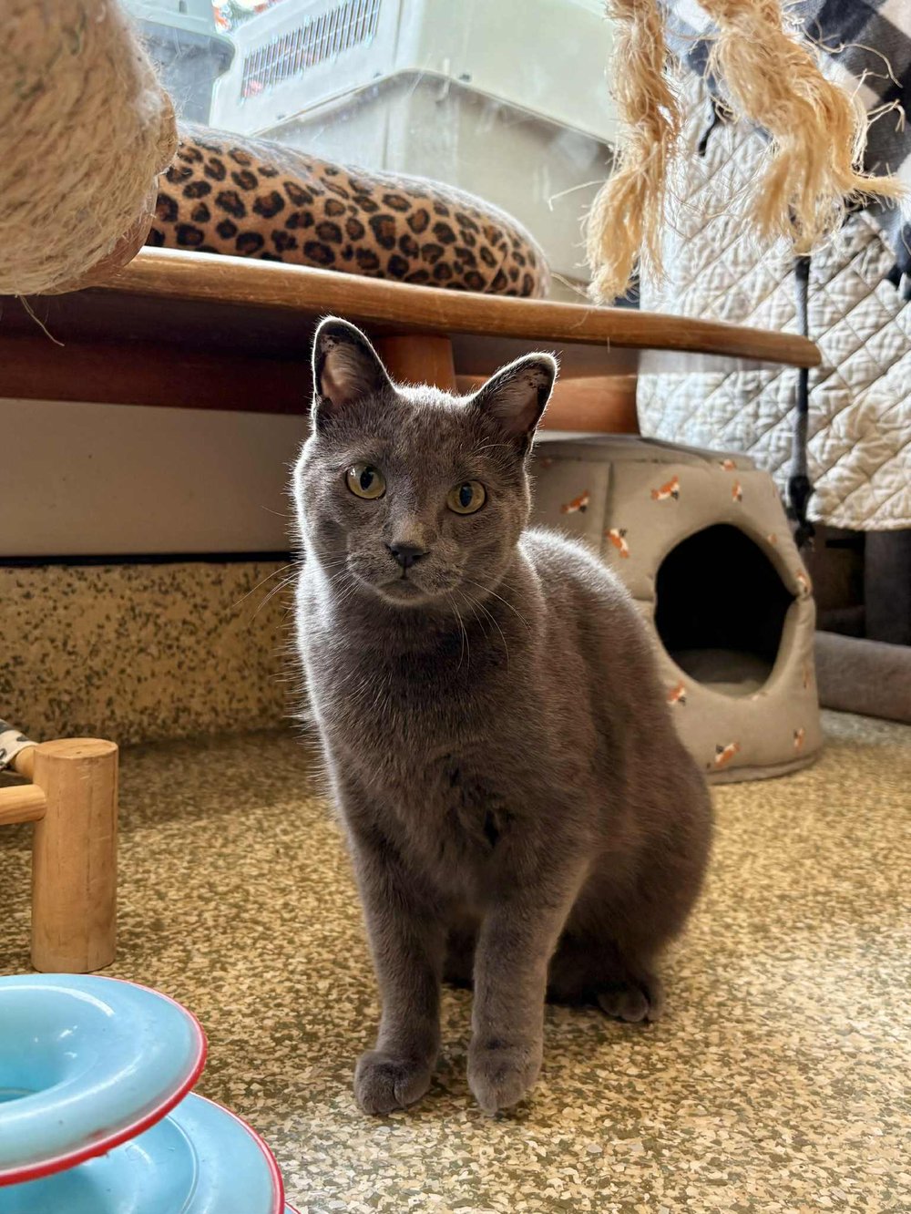 Hi, I'm Remington Steel, or Remi for short. I'm a distinguished, beautiful boy who's looking for a kind and patient home to help me feel safe and come out of my shell. I was a previously feral cat, meaning I've had very limited interaction with humans, so I'm still learning they can be trusted. But I get braver by the day, and if you approach me slowly and kindly, I'll lean into a little head scratch or chin tickle. I know that in an environment where I can go at my own pace, and positive reinforcement to learn how nice people can be, I'll blossom into a wonderful companion. I hope someone will take a chance on me!