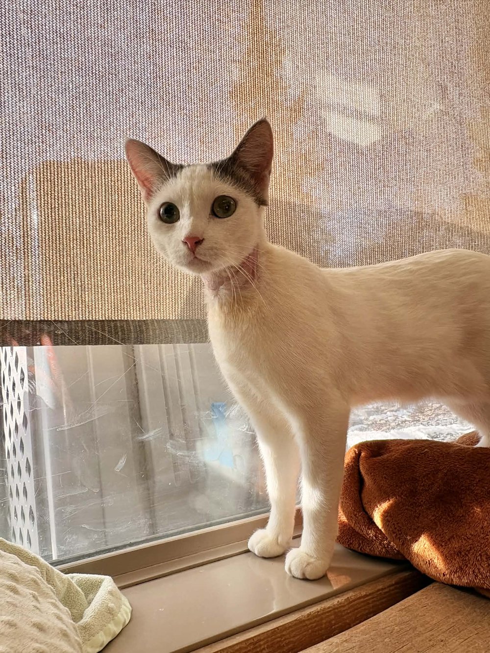 My name is Trooper, and I earned it! I healed from a serious neck injury with a brave spirit and a gentle heart. My fur still needs to grow back, but I'm ready to put that chapter behind me, and trade in vet visits and wound care for toys, treats, and long cuddle sessions. I might seem a little shy at first but give me a moment and I'll show you my true personality: affectionate, curious, and always ready to play. I love exploring, chasing toys, and then flopping down next to you for some well-earned snuggles. Life has thrown me some challenges, but I'm all about moving forward. If you're looking for a soft, sweet companion who just wants to be cherished, I'd love to meet you!