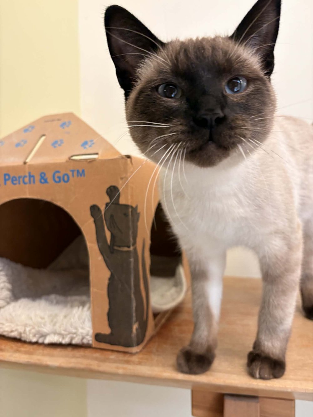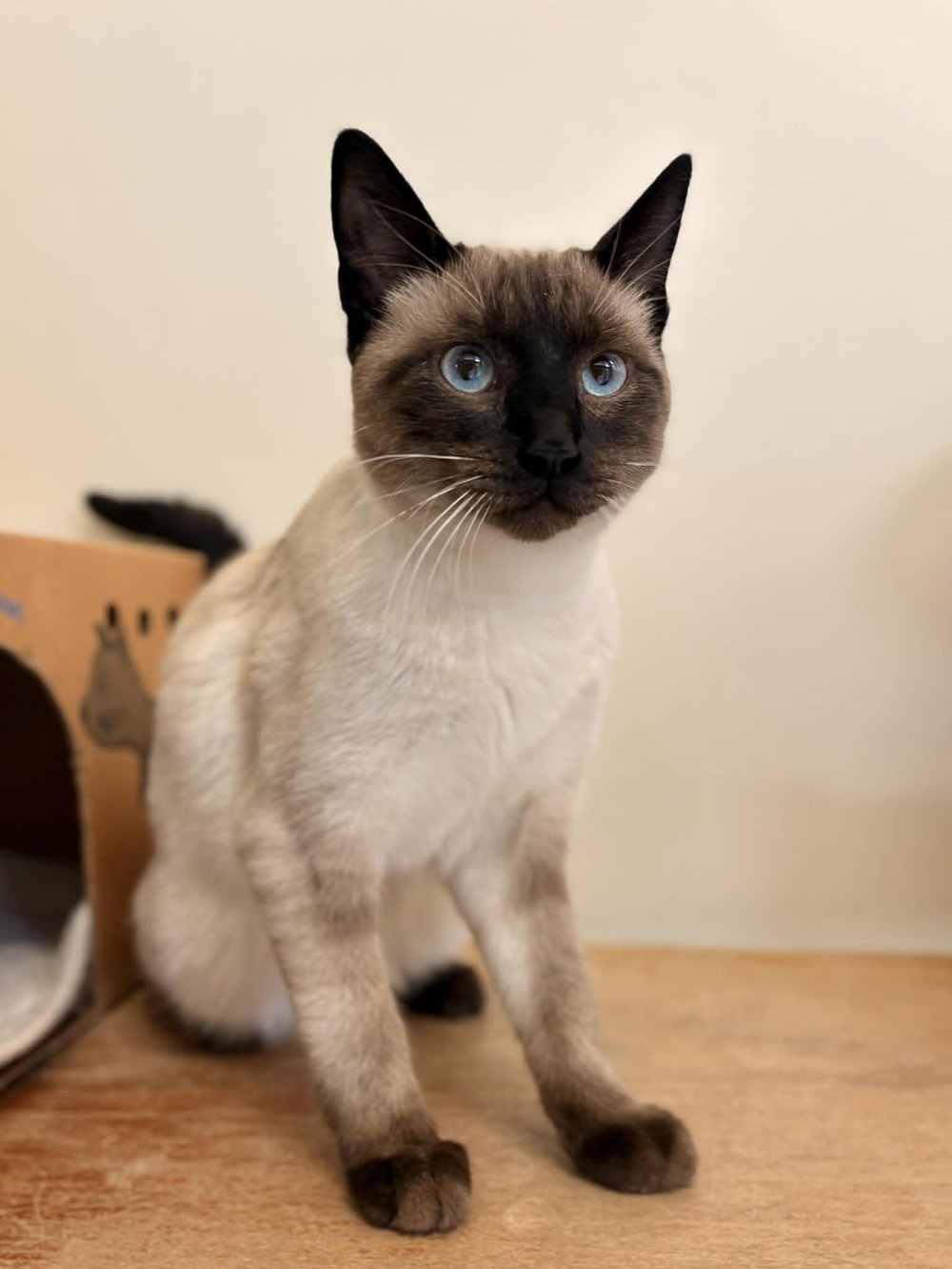 Hi, I'm Viktor, a regal, striking seal point Siamese with the elegance of a king. I consider myself a certified velcro cat who prefers people over other felines, though with a slow introduction, I can coexist with kitty roommates. My favorite hobbies include following you from room to room, supervising all activities with dramatic Siamese flair, and insisting on affection the moment you sit down. If you're looking for a loyal, talkative shadow with gorgeous blue eyes and a heart full of devotion, I'm ready to claim my throne in your home - and preferably, your lap!