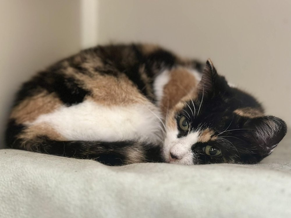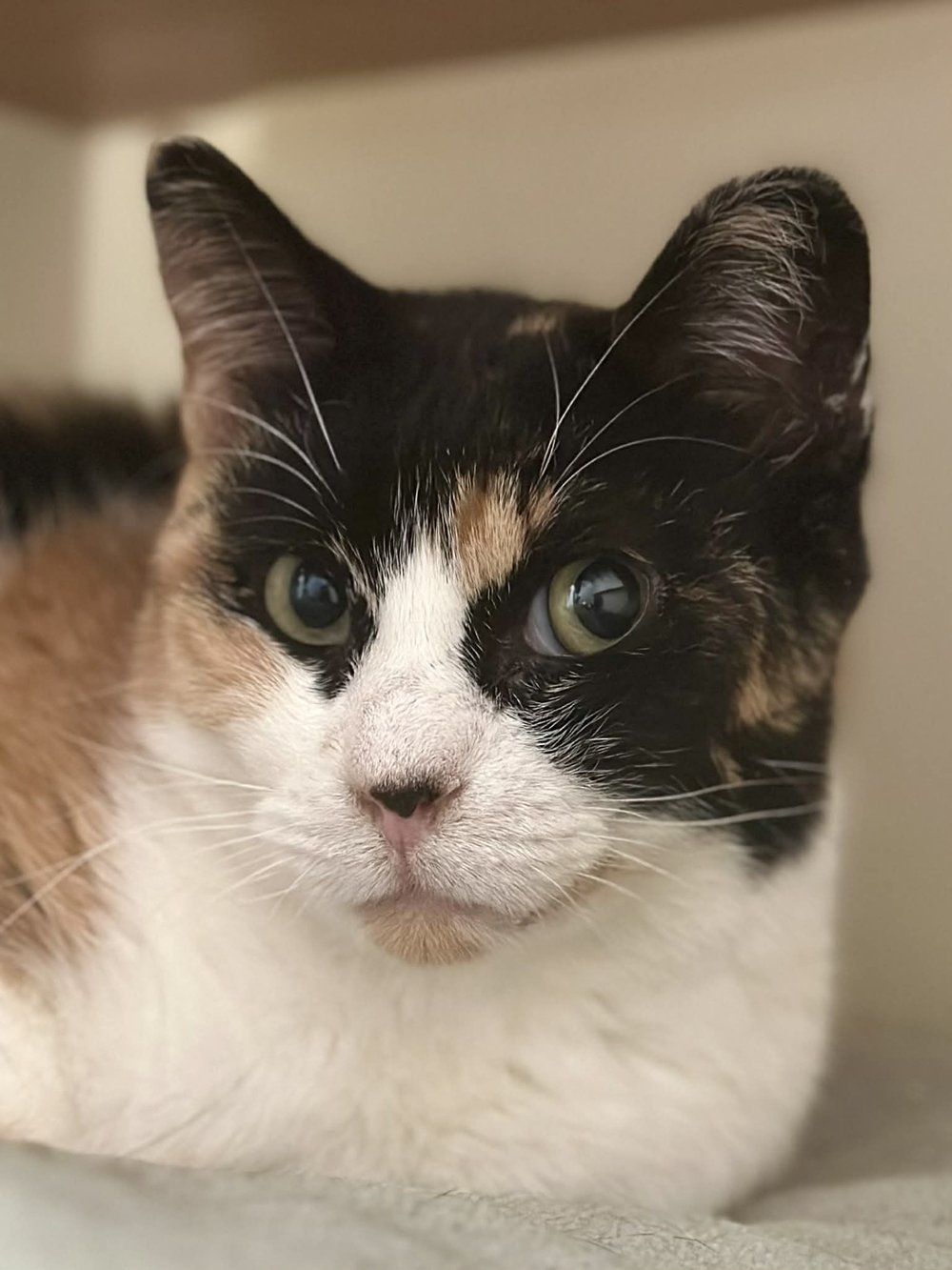 Hi, I'm Zoey! I arrived here with a couple of my buddies, and now I'm waiting to find a nice home to give me a chance. Right now, I'm a bit more spice than sugar, but beneath my bristly exterior, I've got a secret soft spot! I haven't had much interaction with people, so the world is still scary to me. I'm not ready to be touched or cuddled yet, but if you have a quiet home, and some extra patience, I'll be content to live amongst you until I feel safe. I'm a striking girl who still deserves a warm and loving home, even if I'm still learning to trust. Could you be that special person to take a chance on me?