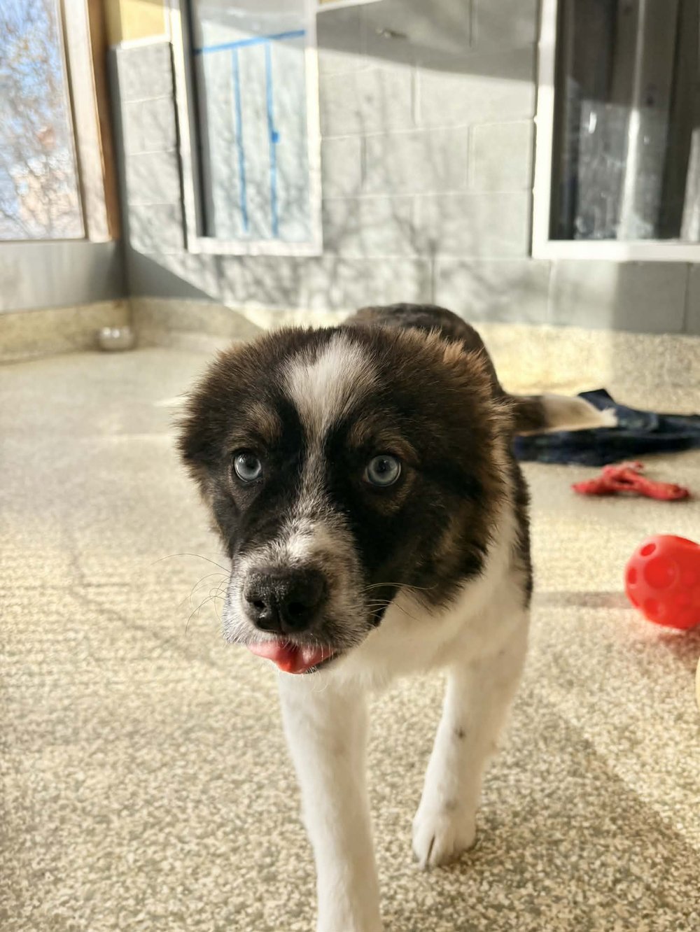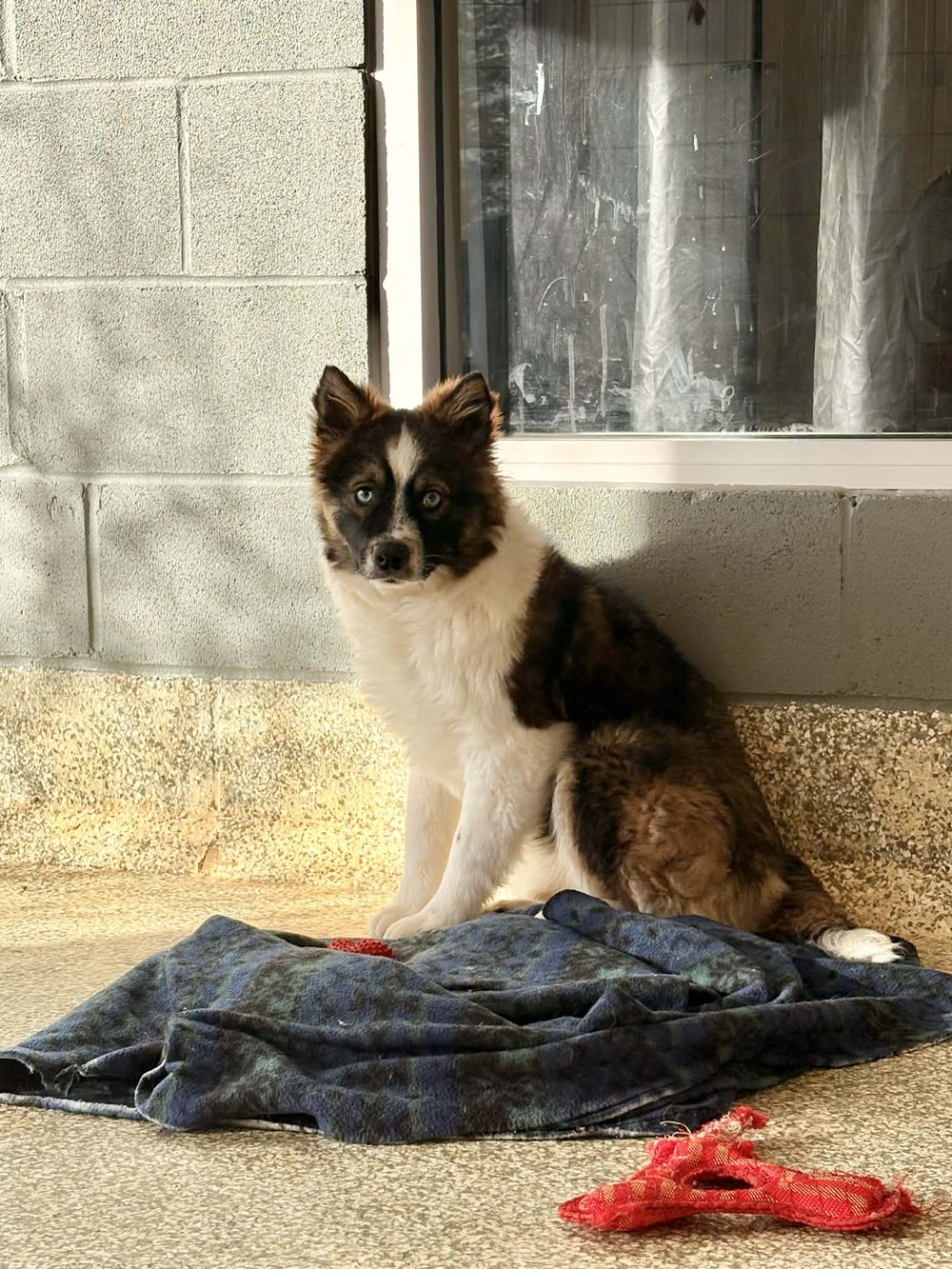 Hi there! My name is Joey (like a baby kangaroo). I'm a very sweet, very shy young pup who is still learning how to feel safe in a big, unfamiliar world. When I first arrived at the Centre, I relied heavily on my brother, Roo, for comfort and confidence. Once I moved into my foster home on my own, it became clear that I'm still very timid and under socialized and still figuring out how to trust people and new experiences. I feel most comfortable when people are sitting or crouched down. When they are, I can relax enough to show my playful side. I love chasing a ball, chewing on my toys, and bouncing around. I'm slowly starting to enjoy the outdoors, but I'm not yet confident walking on a leash or exploring far from the safety of my foster home. I'm looking for a family who understands that I will need a lot of time, patience, and gentle consistency. I need people who will move at my pace, celebrate small steps, and help me learn that the world isn't so scary, and that people are safe, even when they're standing tall! With the right support, I know I can blossom into the loving, joyful companion I'm meant to be.
