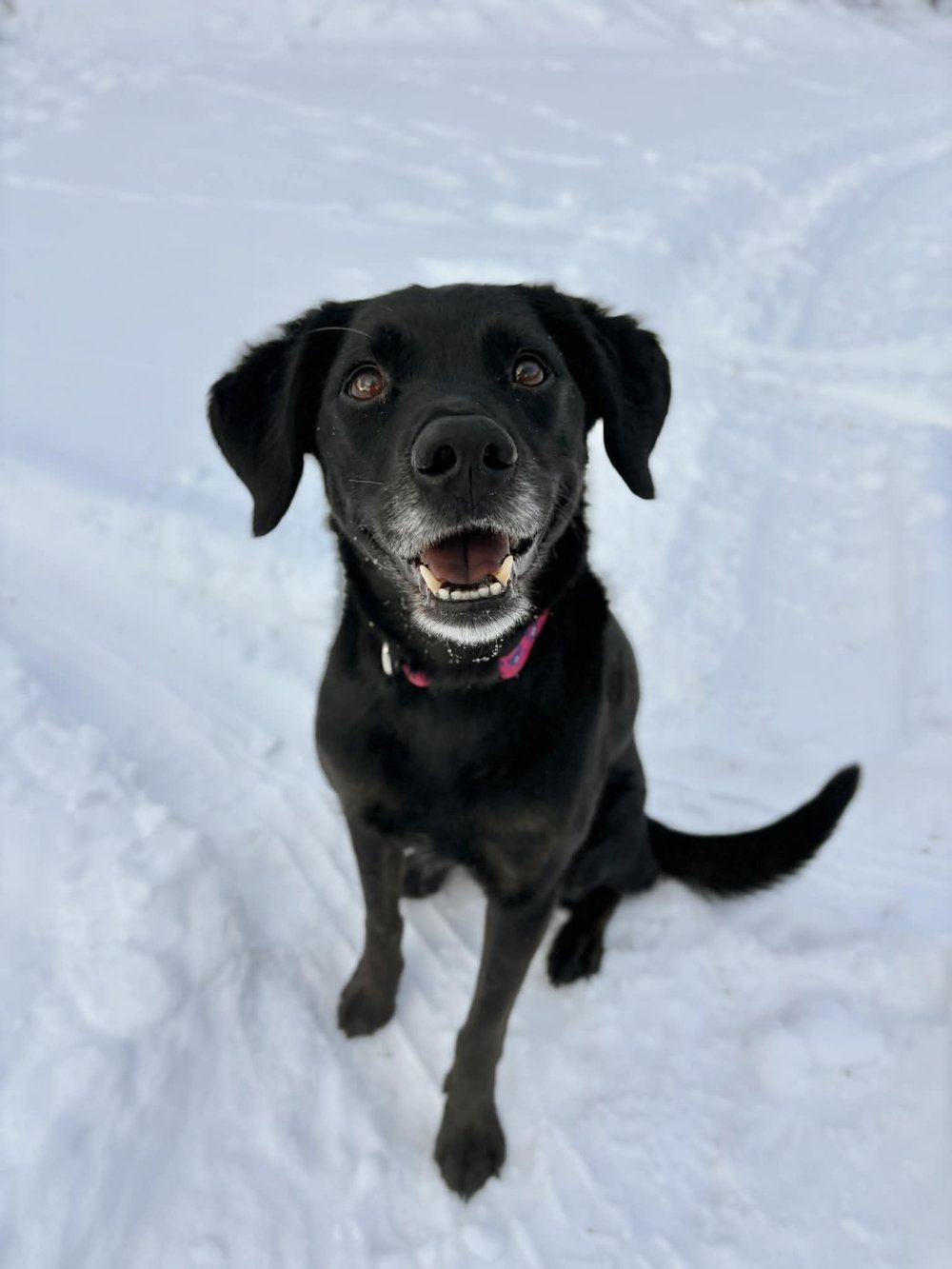 Hi, I'm Stella, your new best friend! I'm a sweet, snuggly, and smart middle-aged mixed-breed with a heart that's just as big as my smile. I may not be a puppy anymore, but trust me, I've perfected the art of being the perfect companion: calm when you want calm, playful when you want fun, and always ready for a cuddle! I love being close to my people, and if you sit down, I'll gently lean in for you to stroke my delightfully soft ears. Although I can be a bit timid upon first meeting (especially with humans of the tall and low-voice variety), I'm easily won over, and seem to get along with kind humans of all ages. I will blossom in a home that appreciates a gentle, loyal dog who's past the chaos of puppyhood but still full of energy and love. I'd make an amazing trail dog, enjoy cozy soft beds, and any opportunity to be told I'm a good girl - which I am, by the way. If you're looking for a devoted companion who will adore you endlessly and make every day a little brighter, I'd love to meet you!